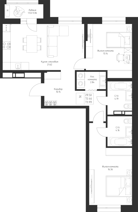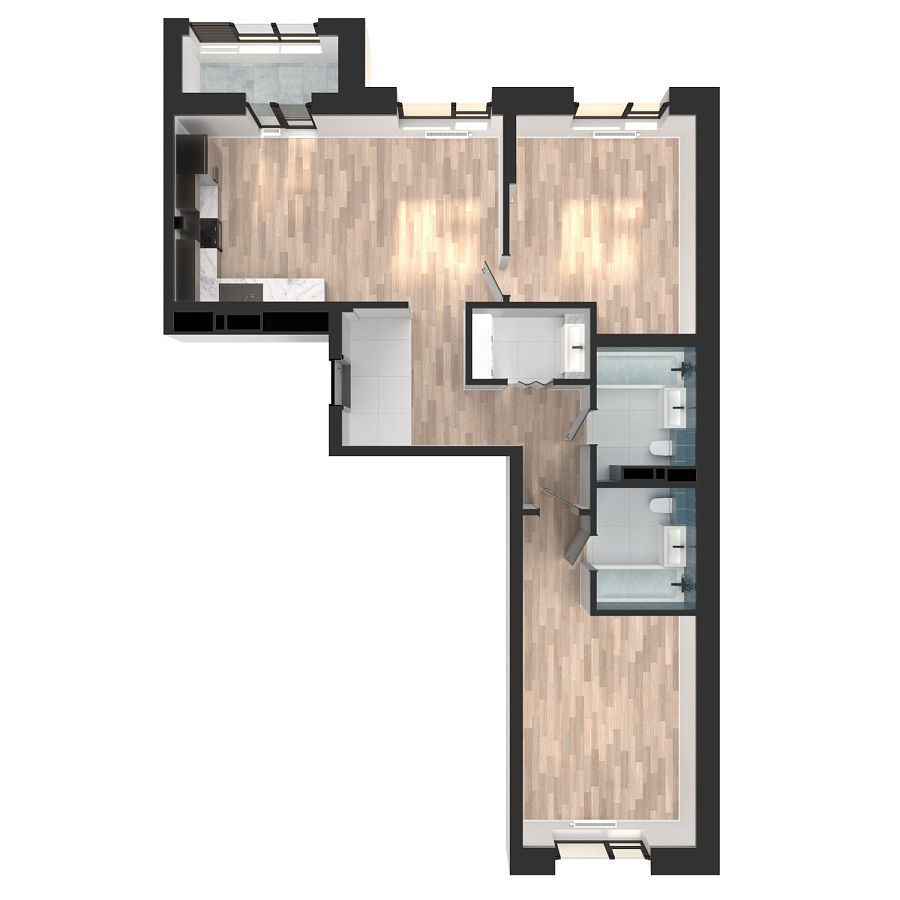 Визуализация и планировка, в том числе в части площади и размера стен жилого помещения, являются проектными и могут быть изменены в ходе строительства объекта. Цена квартиры зависит от выбранной программы и акции, актуальные цены можно уточнить у менеджеров и на момент заключения договора.