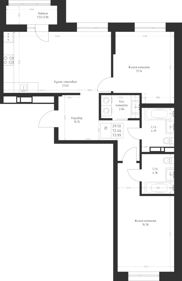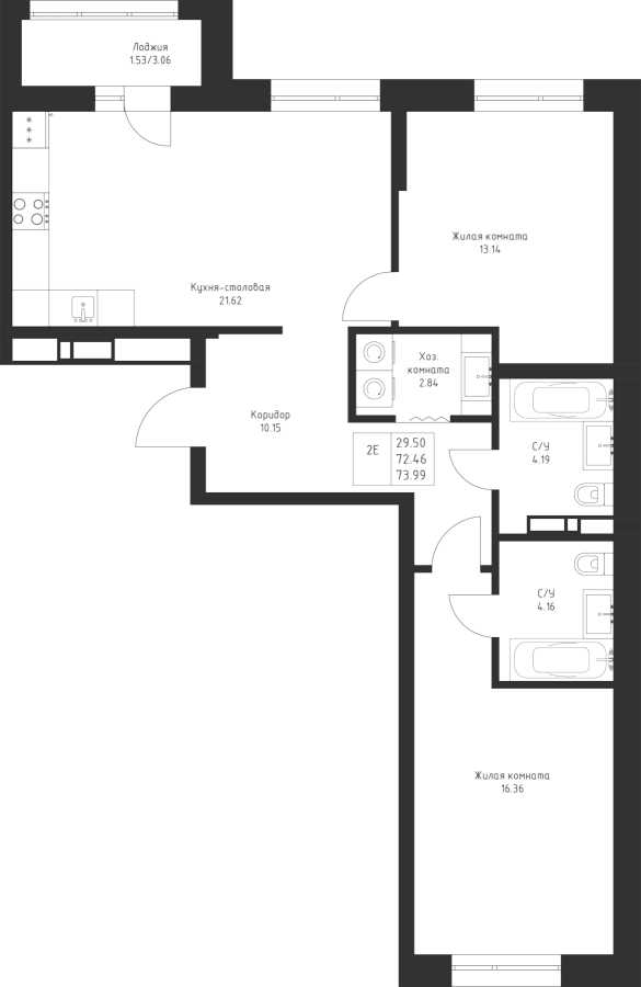 Визуализация и планировка, в том числе в части площади и размера стен жилого помещения, являются проектными и могут быть изменены в ходе строительства объекта. Цена квартиры зависит от выбранной программы и акции, актуальные цены можно уточнить у менеджеров и на момент заключения договора.