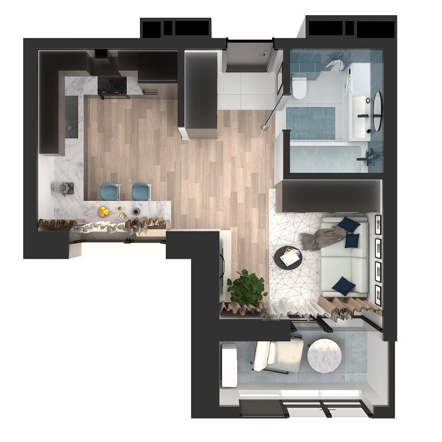 Визуализация и планировка, в том числе в части площади и размера стен жилого помещения, являются проектными и могут быть изменены в ходе строительства объекта. Цена квартиры зависит от выбранной программы и акции, актуальные цены можно уточнить у менеджеров и на момент заключения договора.