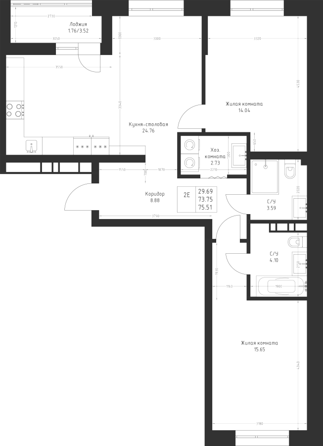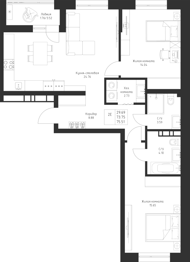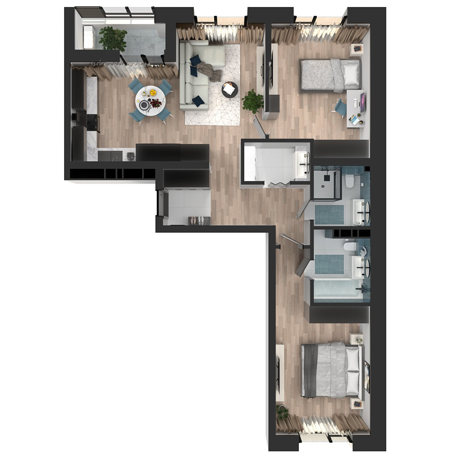 Визуализация и планировка, в том числе в части площади и размера стен жилого помещения, являются проектными и могут быть изменены в ходе строительства объекта. Цена квартиры зависит от выбранной программы и акции, актуальные цены можно уточнить у менеджеров и на момент заключения договора.
