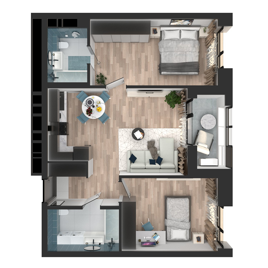 Визуализация и планировка, в том числе в части площади и размера стен жилого помещения, являются проектными и могут быть изменены в ходе строительства объекта. Цена квартиры зависит от выбранной программы и акции, актуальные цены можно уточнить у менеджеров и на момент заключения договора.