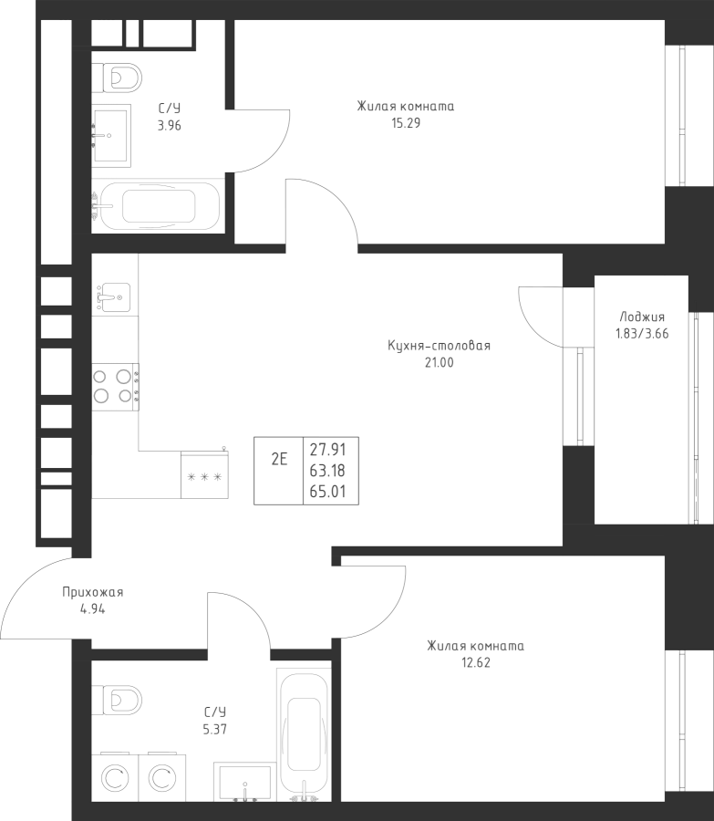 2-к квартира 65.01 м²