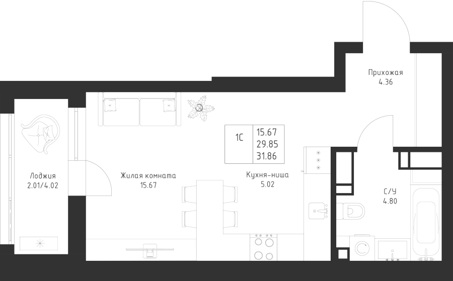Визуализация и планировка, в том числе в части площади и размера стен жилого помещения, являются проектными и могут быть изменены в ходе строительства объекта. Цена квартиры зависит от выбранной программы и акции, актуальные цены можно уточнить у менеджеров и на момент заключения договора.