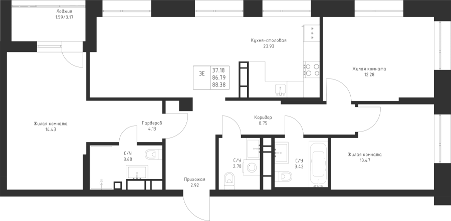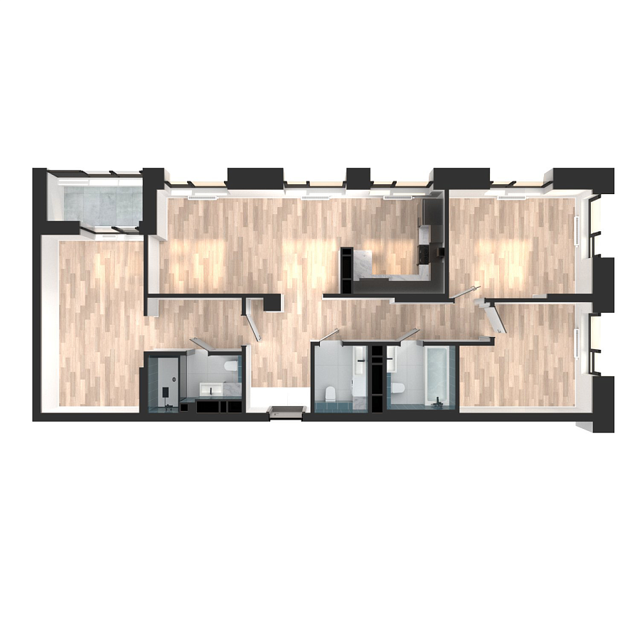 Визуализация и планировка, в том числе в части площади и размера стен жилого помещения, являются проектными и могут быть изменены в ходе строительства объекта. Цена квартиры зависит от выбранной программы и акции, актуальные цены можно уточнить у менеджеров и на момент заключения договора.
