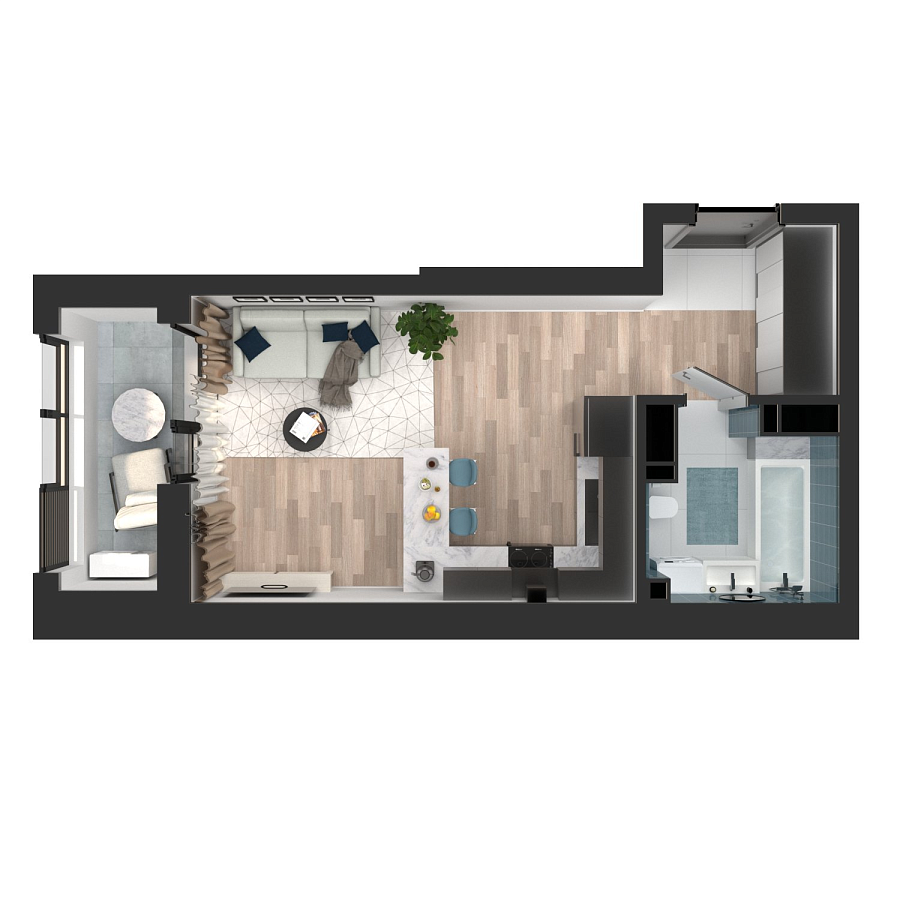 Визуализация и планировка, в том числе в части площади и размера стен жилого помещения, являются проектными и могут быть изменены в ходе строительства объекта. Цена квартиры зависит от выбранной программы и акции, актуальные цены можно уточнить у менеджеров и на момент заключения договора.