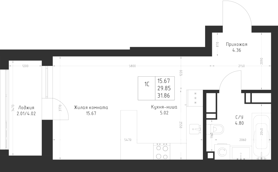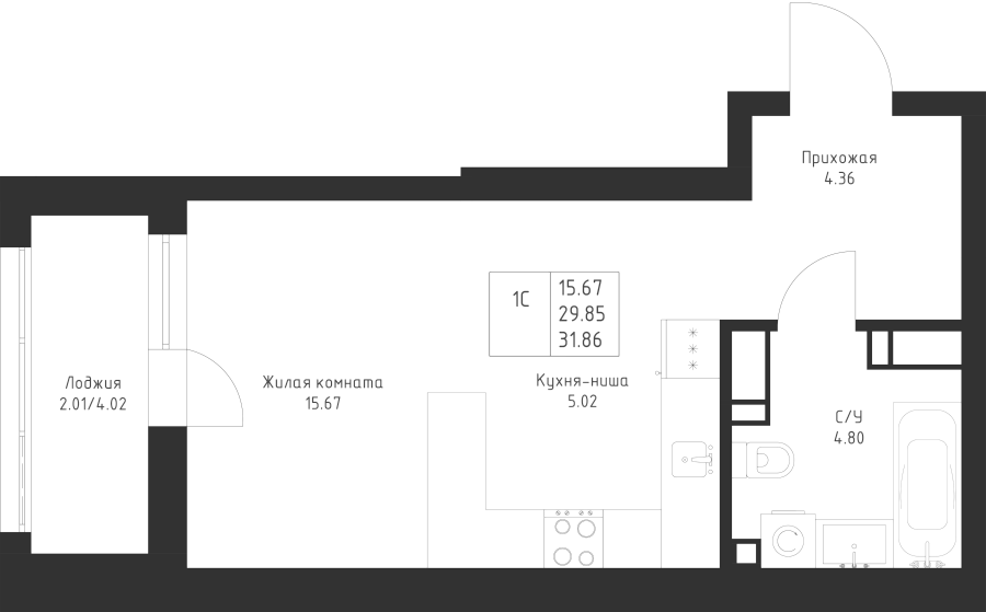 Студия 31.86 м²