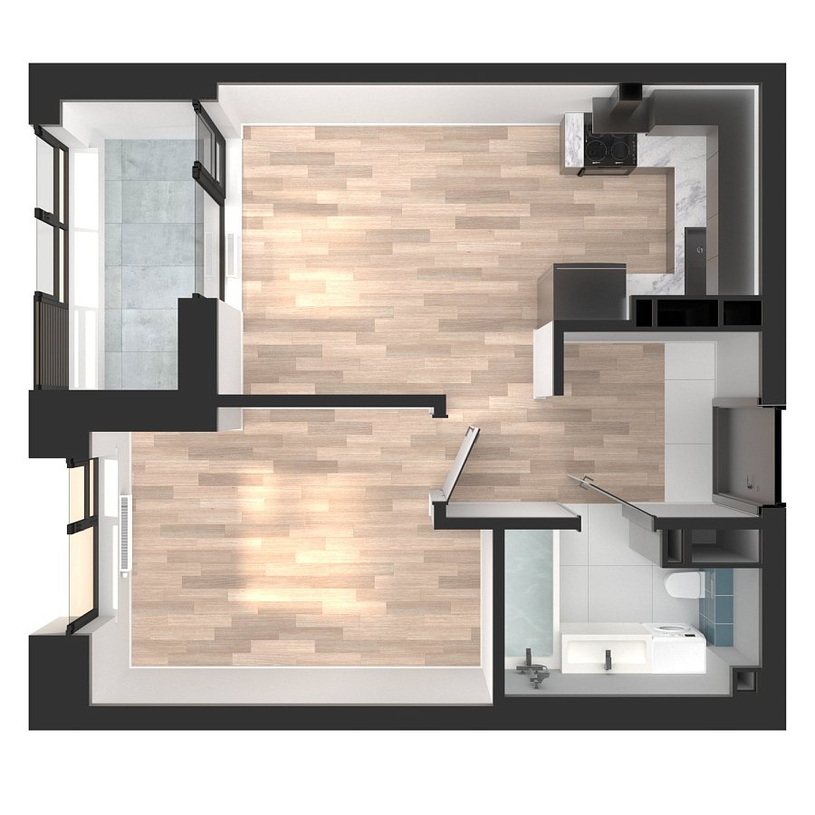Визуализация и планировка, в том числе в части площади и размера стен жилого помещения, являются проектными и могут быть изменены в ходе строительства объекта. Цена квартиры зависит от выбранной программы и акции, актуальные цены можно уточнить у менеджеров и на момент заключения договора.