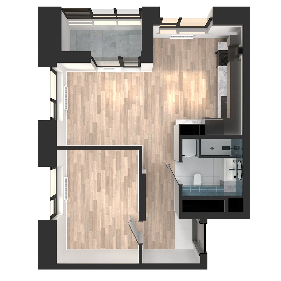 Визуализация и планировка, в том числе в части площади и размера стен жилого помещения, являются проектными и могут быть изменены в ходе строительства объекта. Цена квартиры зависит от выбранной программы и акции, актуальные цены можно уточнить у менеджеров и на момент заключения договора.