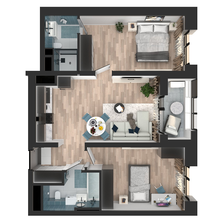 Визуализация и планировка, в том числе в части площади и размера стен жилого помещения, являются проектными и могут быть изменены в ходе строительства объекта. Цена квартиры зависит от выбранной программы и акции, актуальные цены можно уточнить у менеджеров и на момент заключения договора.
