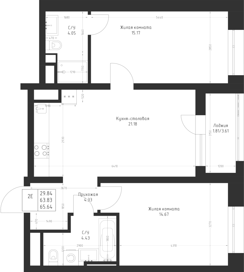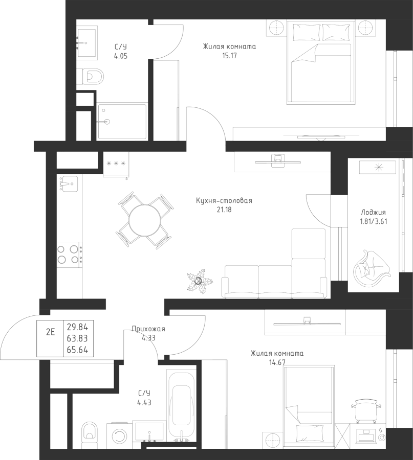 2-к квартира 65.64 м²