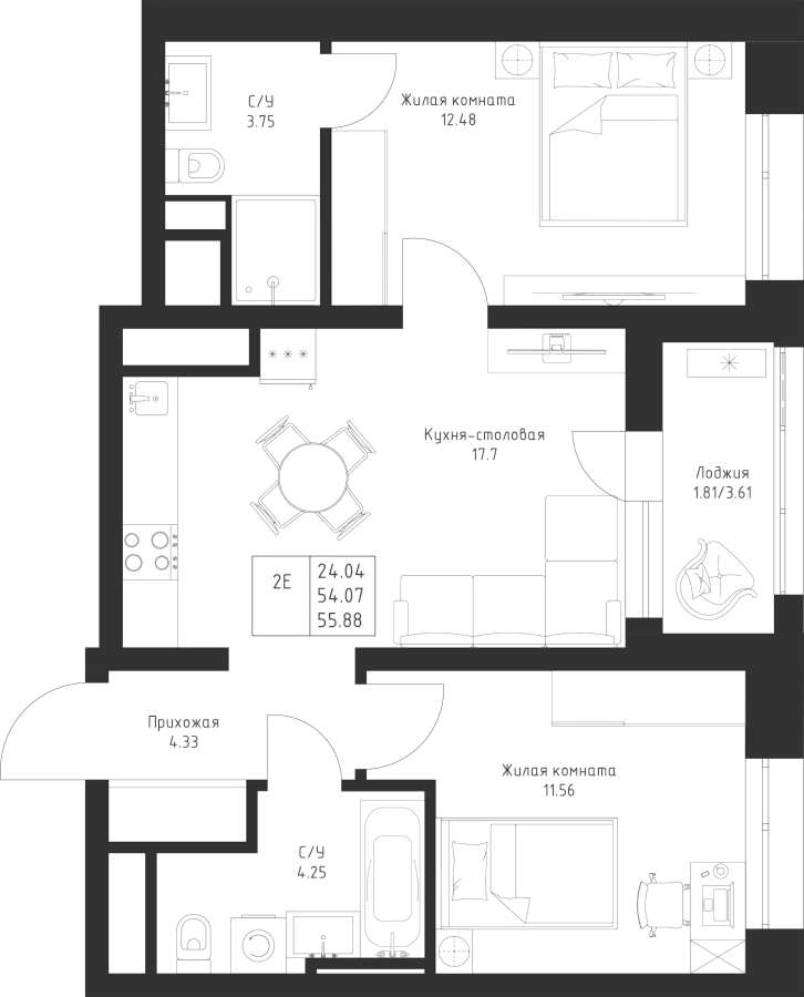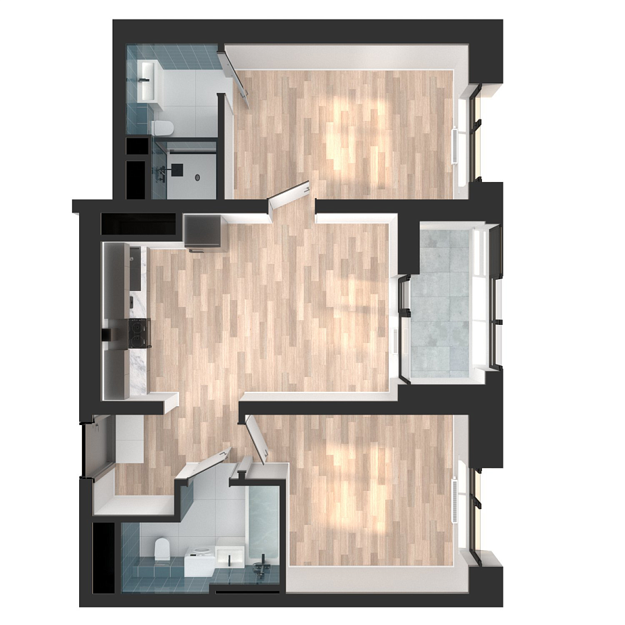 Визуализация и планировка, в том числе в части площади и размера стен жилого помещения, являются проектными и могут быть изменены в ходе строительства объекта. Цена квартиры зависит от выбранной программы и акции, актуальные цены можно уточнить у менеджеров и на момент заключения договора.