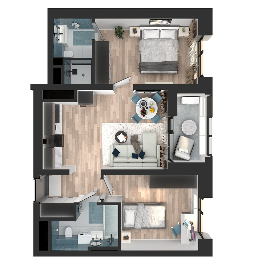 Визуализация и планировка, в том числе в части площади и размера стен жилого помещения, являются проектными и могут быть изменены в ходе строительства объекта. Цена квартиры зависит от выбранной программы и акции, актуальные цены можно уточнить у менеджеров и на момент заключения договора.