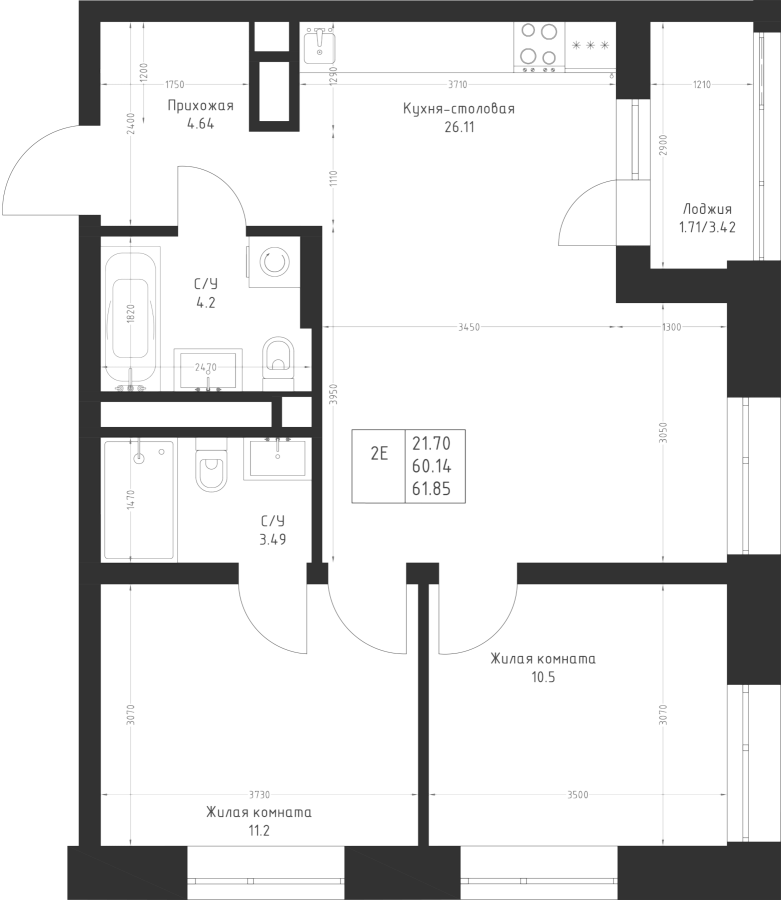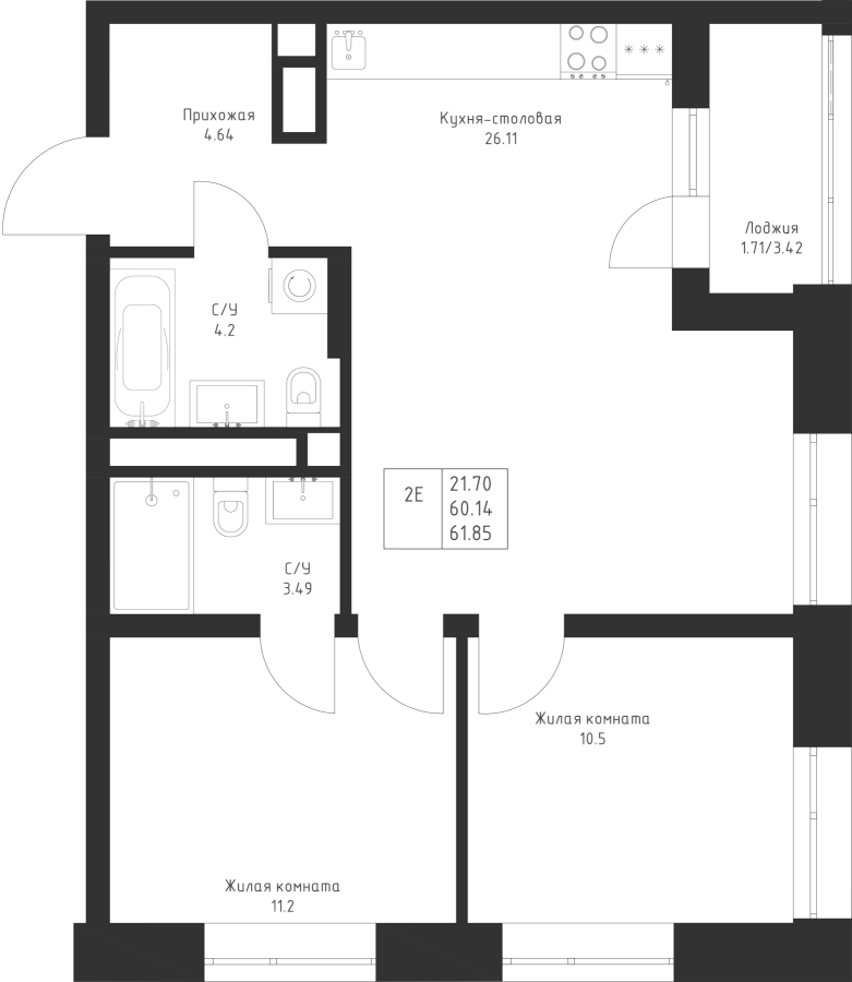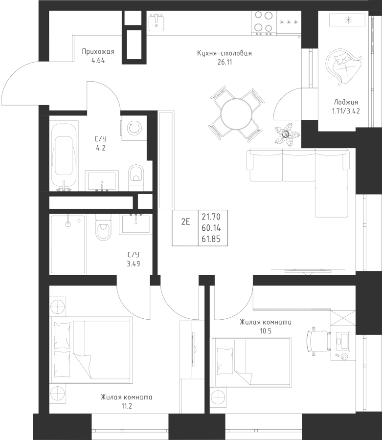 Визуализация и планировка, в том числе в части площади и размера стен жилого помещения, являются проектными и могут быть изменены в ходе строительства объекта. Цена квартиры зависит от выбранной программы и акции, актуальные цены можно уточнить у менеджеров и на момент заключения договора.