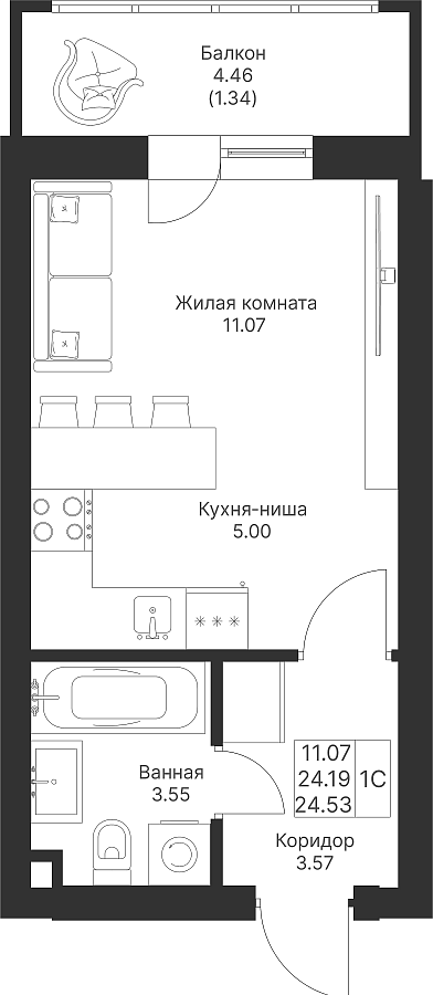 Визуализация и планировка, в том числе в части площади и размера стен жилого помещения, являются проектными и могут быть изменены в ходе строительства объекта. Цена квартиры зависит от выбранной программы и акции, актуальные цены можно уточнить у менеджеров и на момент заключения договора.