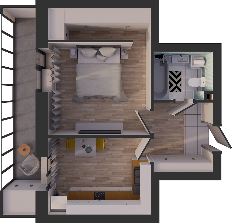 Визуализация и планировка, в том числе в части площади и размера стен жилого помещения, являются проектными и могут быть изменены в ходе строительства объекта. Цена квартиры зависит от выбранной программы и акции, актуальные цены можно уточнить у менеджеров и на момент заключения договора.