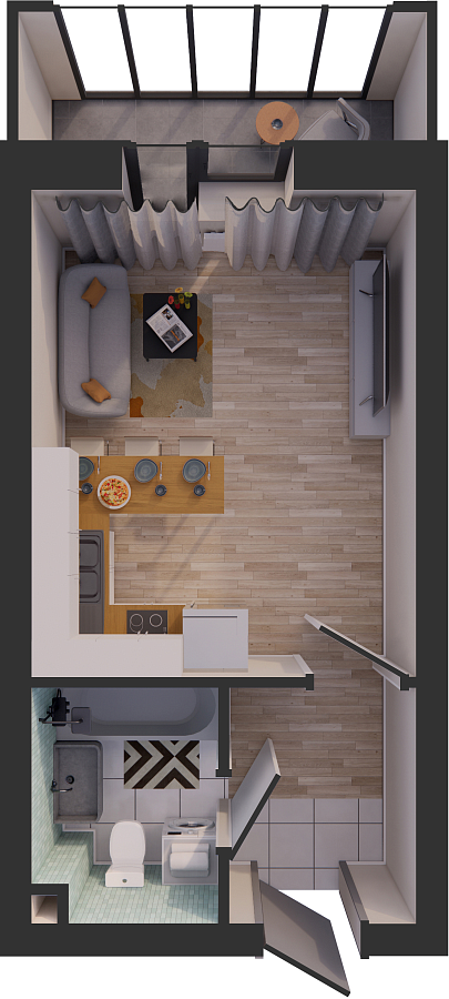 Визуализация и планировка, в том числе в части площади и размера стен жилого помещения, являются проектными и могут быть изменены в ходе строительства объекта. Цена квартиры зависит от выбранной программы и акции, актуальные цены можно уточнить у менеджеров и на момент заключения договора.