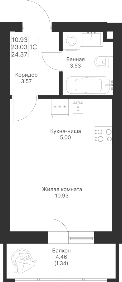 Студия 24.37 м²