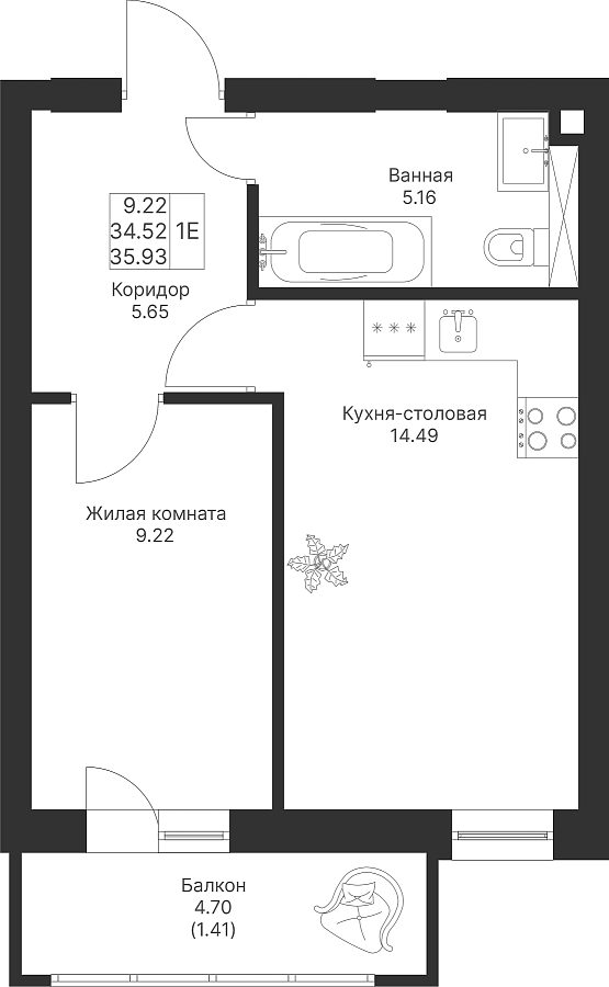 1-к квартира 35.93 м²