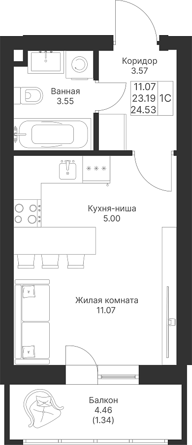 Визуализация и планировка, в том числе в части площади и размера стен жилого помещения, являются проектными и могут быть изменены в ходе строительства объекта. Цена квартиры зависит от выбранной программы и акции, актуальные цены можно уточнить у менеджеров и на момент заключения договора.