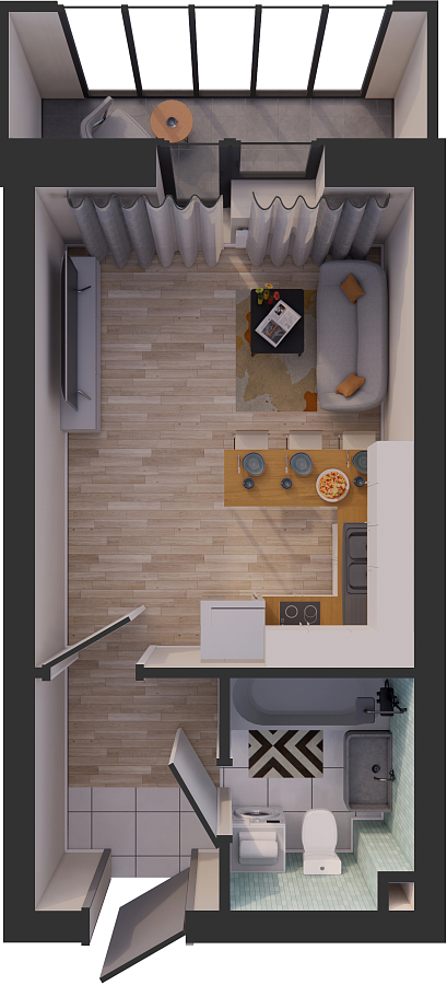 Визуализация и планировка, в том числе в части площади и размера стен жилого помещения, являются проектными и могут быть изменены в ходе строительства объекта. Цена квартиры зависит от выбранной программы и акции, актуальные цены можно уточнить у менеджеров и на момент заключения договора.