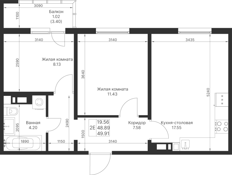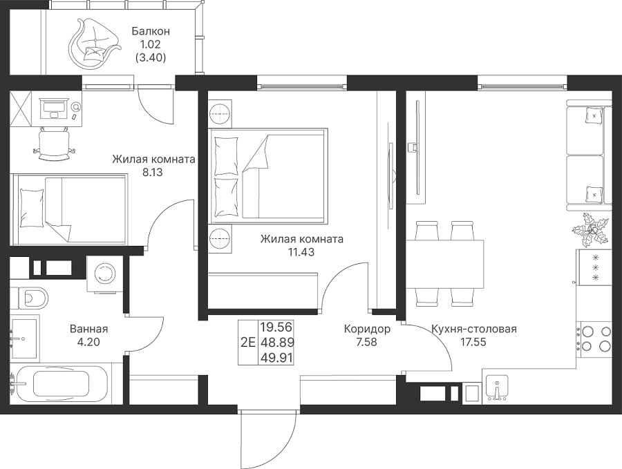 Визуализация и планировка, в том числе в части площади и размера стен жилого помещения, являются проектными и могут быть изменены в ходе строительства объекта. Цена квартиры зависит от выбранной программы и акции, актуальные цены можно уточнить у менеджеров и на момент заключения договора.