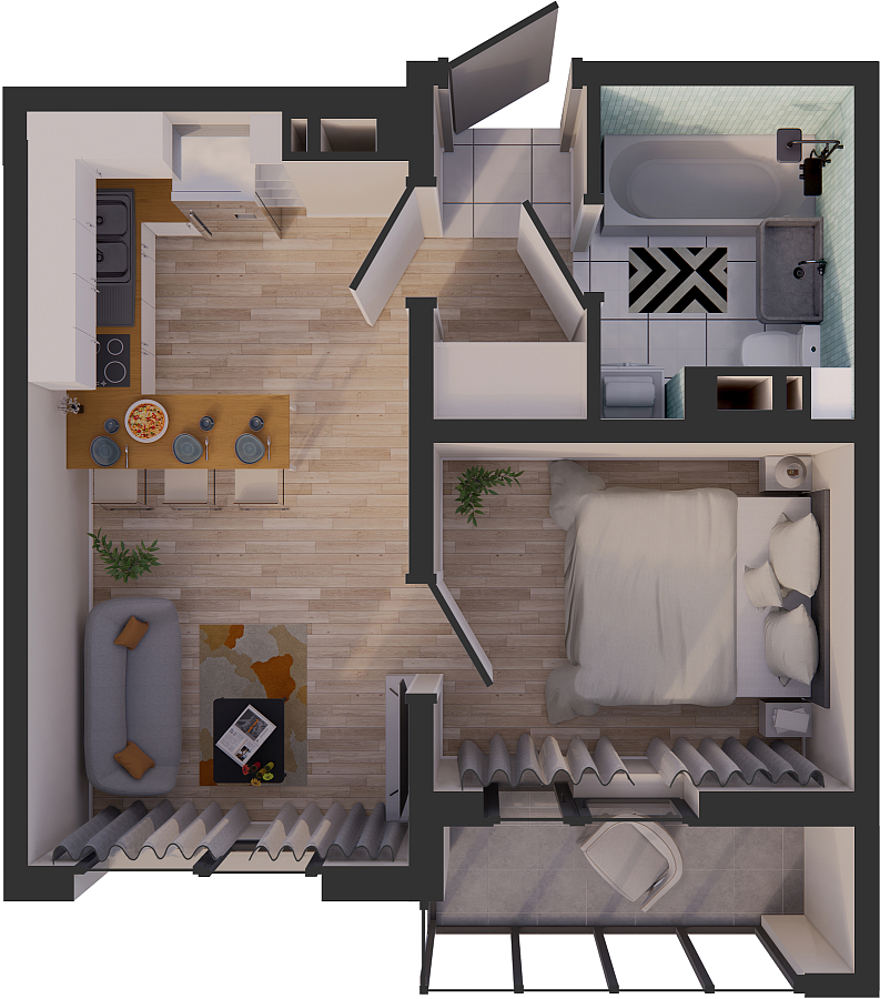 Визуализация и планировка, в том числе в части площади и размера стен жилого помещения, являются проектными и могут быть изменены в ходе строительства объекта. Цена квартиры зависит от выбранной программы и акции, актуальные цены можно уточнить у менеджеров и на момент заключения договора.
