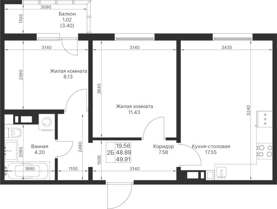 Визуализация и планировка, в том числе в части площади и размера стен жилого помещения, являются проектными и могут быть изменены в ходе строительства объекта. Цена квартиры зависит от выбранной программы и акции, актуальные цены можно уточнить у менеджеров и на момент заключения договора.