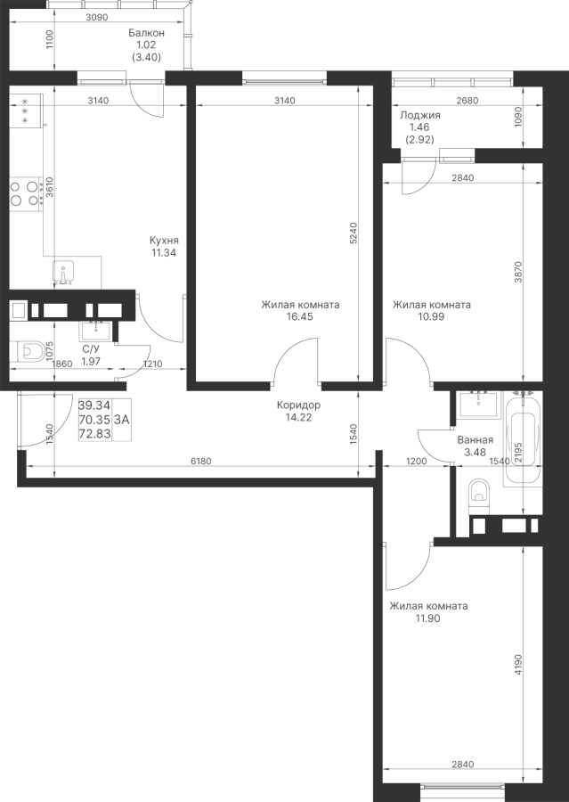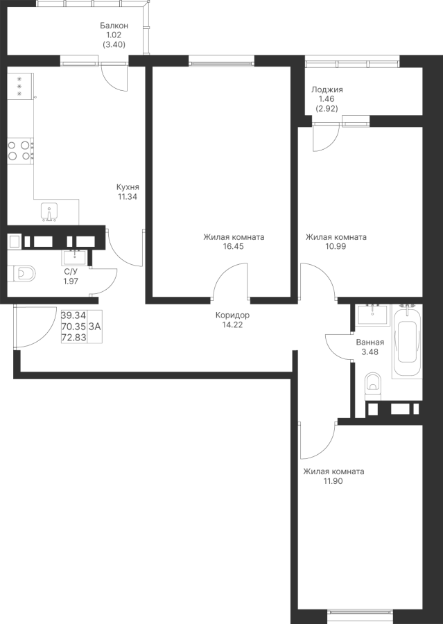 3-к квартира 72.83 м²