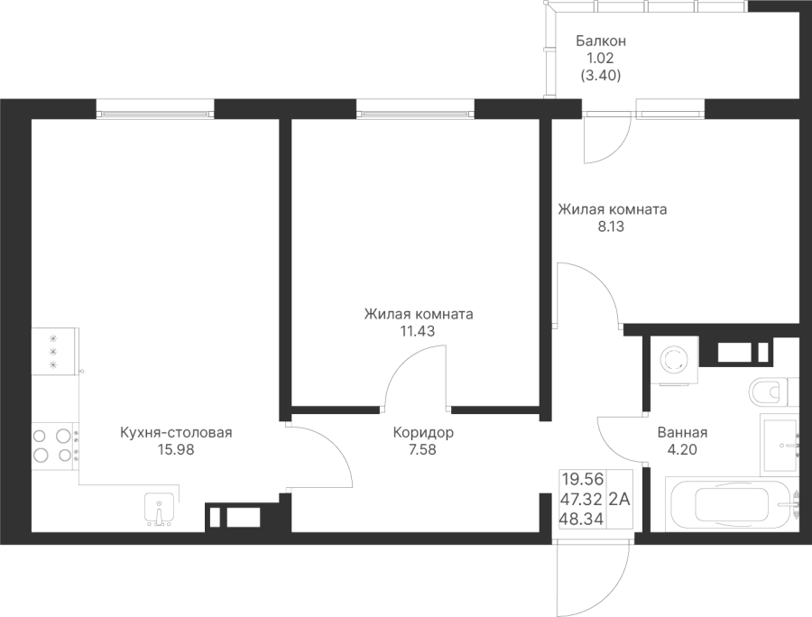 Визуализация и планировка, в том числе в части площади и размера стен жилого помещения, являются проектными и могут быть изменены в ходе строительства объекта. Цена квартиры зависит от выбранной программы и акции, актуальные цены можно уточнить у менеджеров и на момент заключения договора.