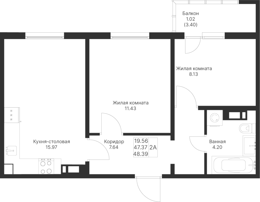 Визуализация и планировка, в том числе в части площади и размера стен жилого помещения, являются проектными и могут быть изменены в ходе строительства объекта. Цена квартиры зависит от выбранной программы и акции, актуальные цены можно уточнить у менеджеров и на момент заключения договора.