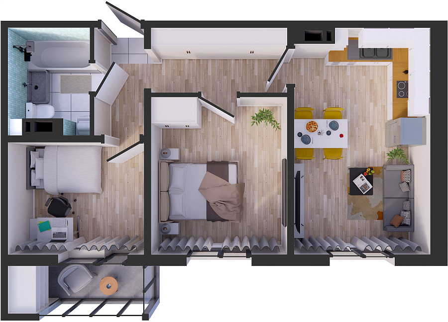 Визуализация и планировка, в том числе в части площади и размера стен жилого помещения, являются проектными и могут быть изменены в ходе строительства объекта. Цена квартиры зависит от выбранной программы и акции, актуальные цены можно уточнить у менеджеров и на момент заключения договора.
