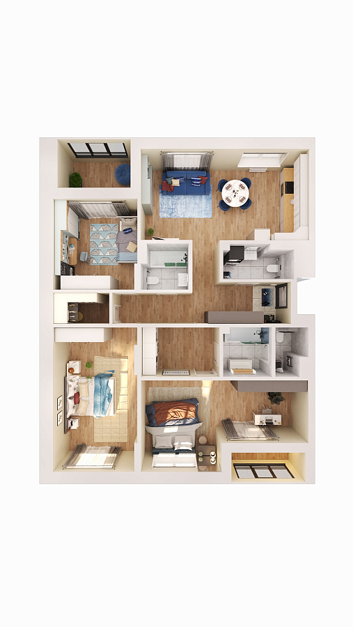 Визуализация и планировка, в том числе в части площади и размера стен жилого помещения, являются проектными и могут быть изменены в ходе строительства объекта. Цена квартиры зависит от выбранной программы и акции, актуальные цены можно уточнить у менеджеров и на момент заключения договора.