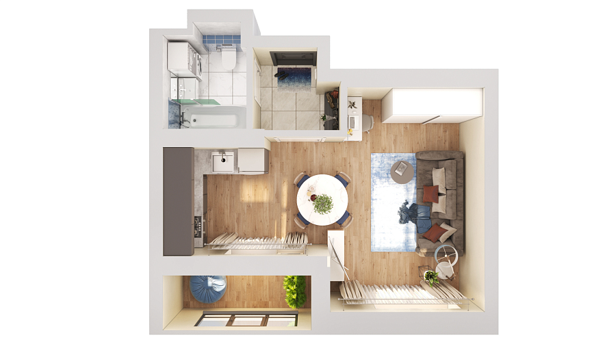Визуализация и планировка, в том числе в части площади и размера стен жилого помещения, являются проектными и могут быть изменены в ходе строительства объекта. Цена квартиры зависит от выбранной программы и акции, актуальные цены можно уточнить у менеджеров и на момент заключения договора.