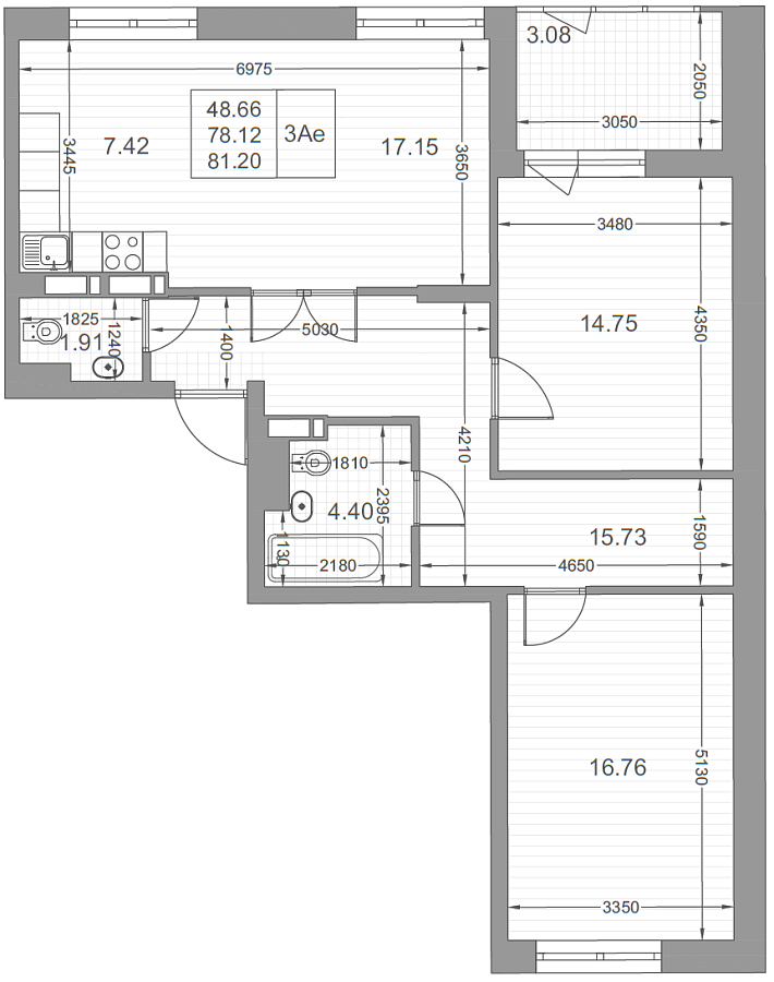3-к квартира 81.1 м²