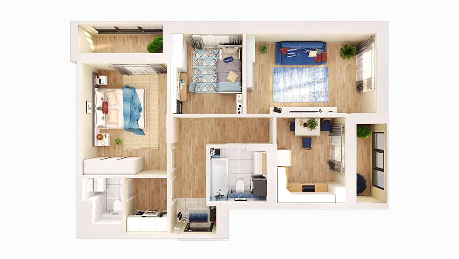 Визуализация и планировка, в том числе в части площади и размера стен жилого помещения, являются проектными и могут быть изменены в ходе строительства объекта. Цена квартиры зависит от выбранной программы и акции, актуальные цены можно уточнить у менеджеров и на момент заключения договора.